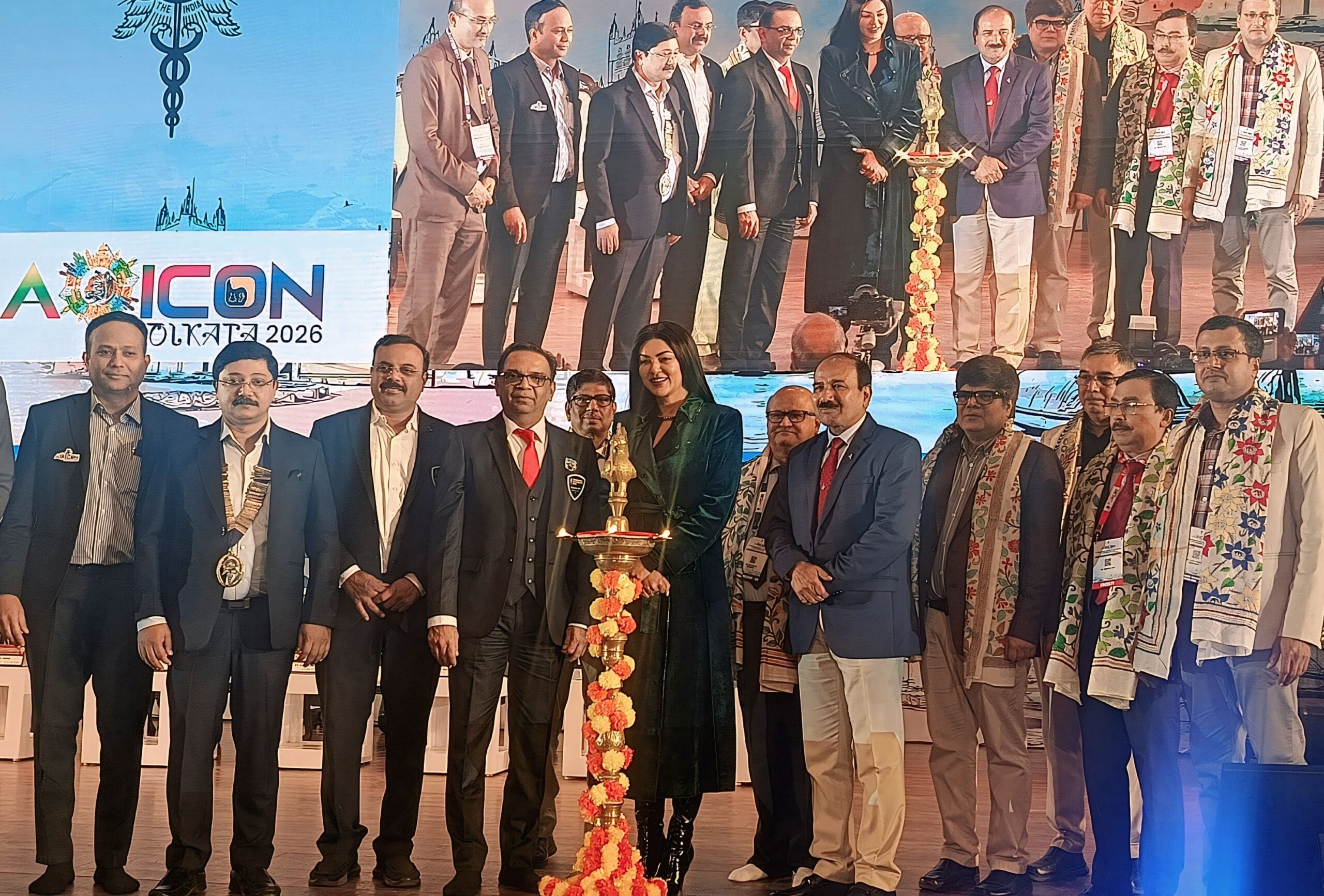 Prominent medical leaders present included Dr. Dwaipayan Mukherjee, National President of AOI; Dr. Shankar Medican, former National President; Dr. Yogesh Debholkar; Dr. Utpal Jana, Organising Chairman and President of AOI West Bengal; Dr. Snehasis Barman, Organising Secretary of AOCICON 2026; and Dr. Soumendra Nath Bandopadhyay, along with several renowned ENT specialists from across the country.